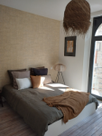 Dans l’autre chambre il y a 1 armoire, 2 tables de chevet, 2 lampes de chevet et 1 fauteuil.
