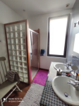 La salle de bain il y a 1 machine à laver le linge, 1 sèche cheveux, 1 coffre de rangement.